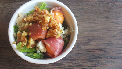 Melon and Prosciutto, Bleu Cheese and Raspberry Vinaigrette--this was really good and a well balanced salad. Salty from the prosciutto and bleu cheese then sweetness from the melon and dressing. And I forgot to mention the candied walnuts that added crunch--everything was so good and perfect. Sad thing though--its going to be an upgrade.